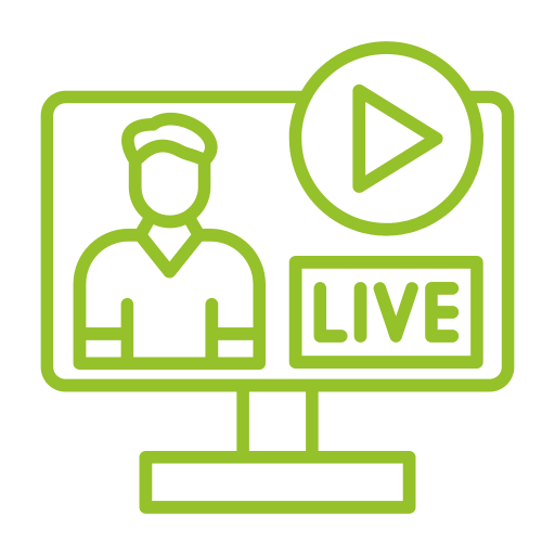 Realizamos capacitaciones en vivo (sincrónicas o asincrónicas) en un formato casi televisivo con mucho dinamismo, con herramientas que permiten que el usuario interactúe como si fuese auditorio físico.